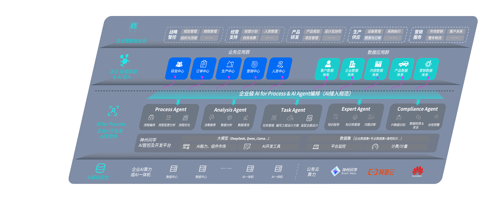 抖圈问学智车解决方案是一套基于AI技术的汽车行业智能化系统,,,覆盖从底层算力到顶层AI应用的全栈方案。。。方案由算力层、、模型层和应用层组成:算力层,,,,方案支持多种一体机配置,,,,具备云端灵活部署、、、、多云适配以及动态优化计算资源的能力;模型层,,抖圈问学平台版提供了企业级AI应用一站式构建与管理平台,,,,支持基于后训练强化技术的汽车企业专属模型的训练、、、评测和运营;应用层,,,抖圈问学DeepSeek版提供包括超级员工、、、、智能招采、、、、智能营销、、、智能客服、、、AI for BI等一系列解决方案,,可助力汽车行业实现数字化转型,,,让管理更智能、、响应更敏捷。。。
